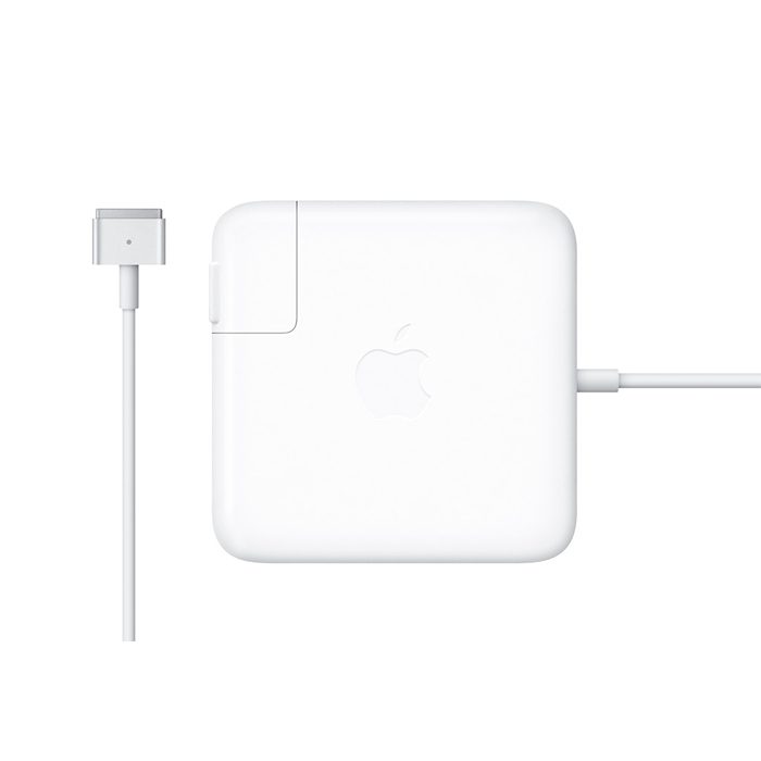 The Apple 85W MagSafe Power Adapter is designed specifically for 15- and 17-inch MacBook Pro models with a MagSafe power port. It features a magnetic DC connector that ensures a secure connection and disconnects safely if the cable is pulled, helping prevent fraying or weakening of the cables over time.