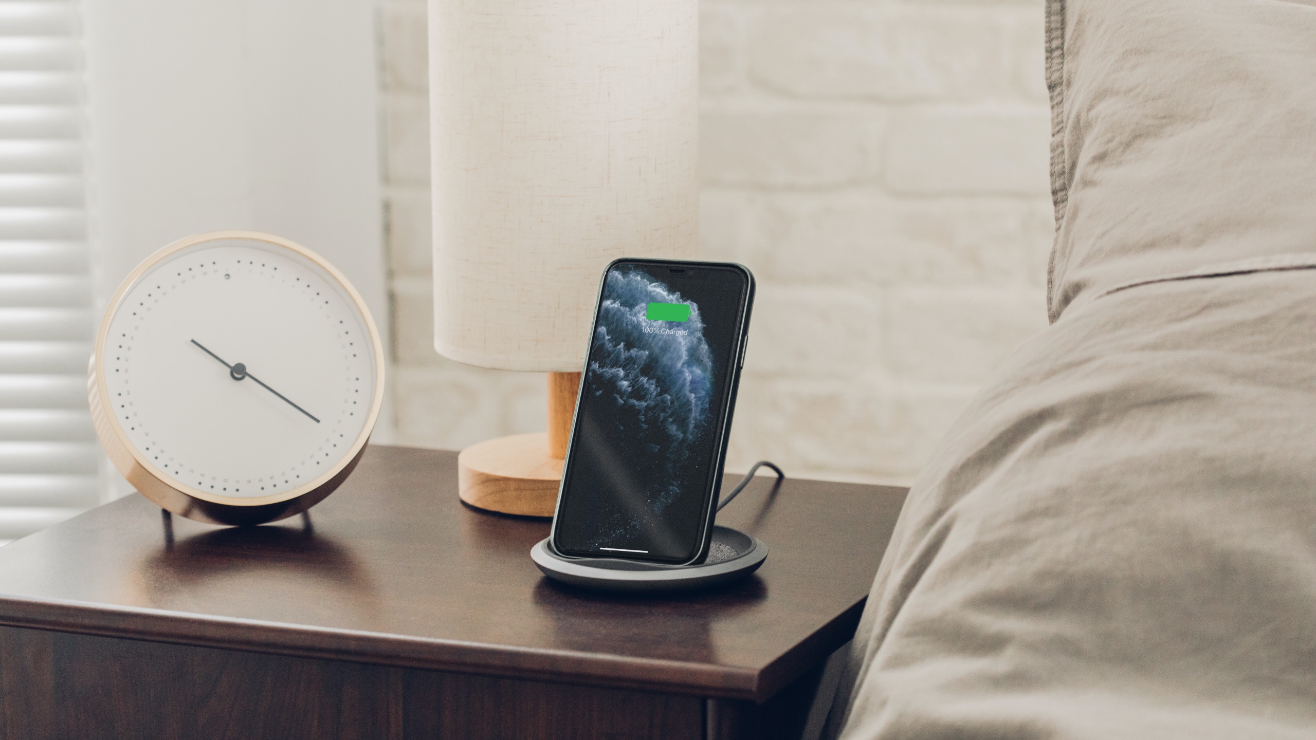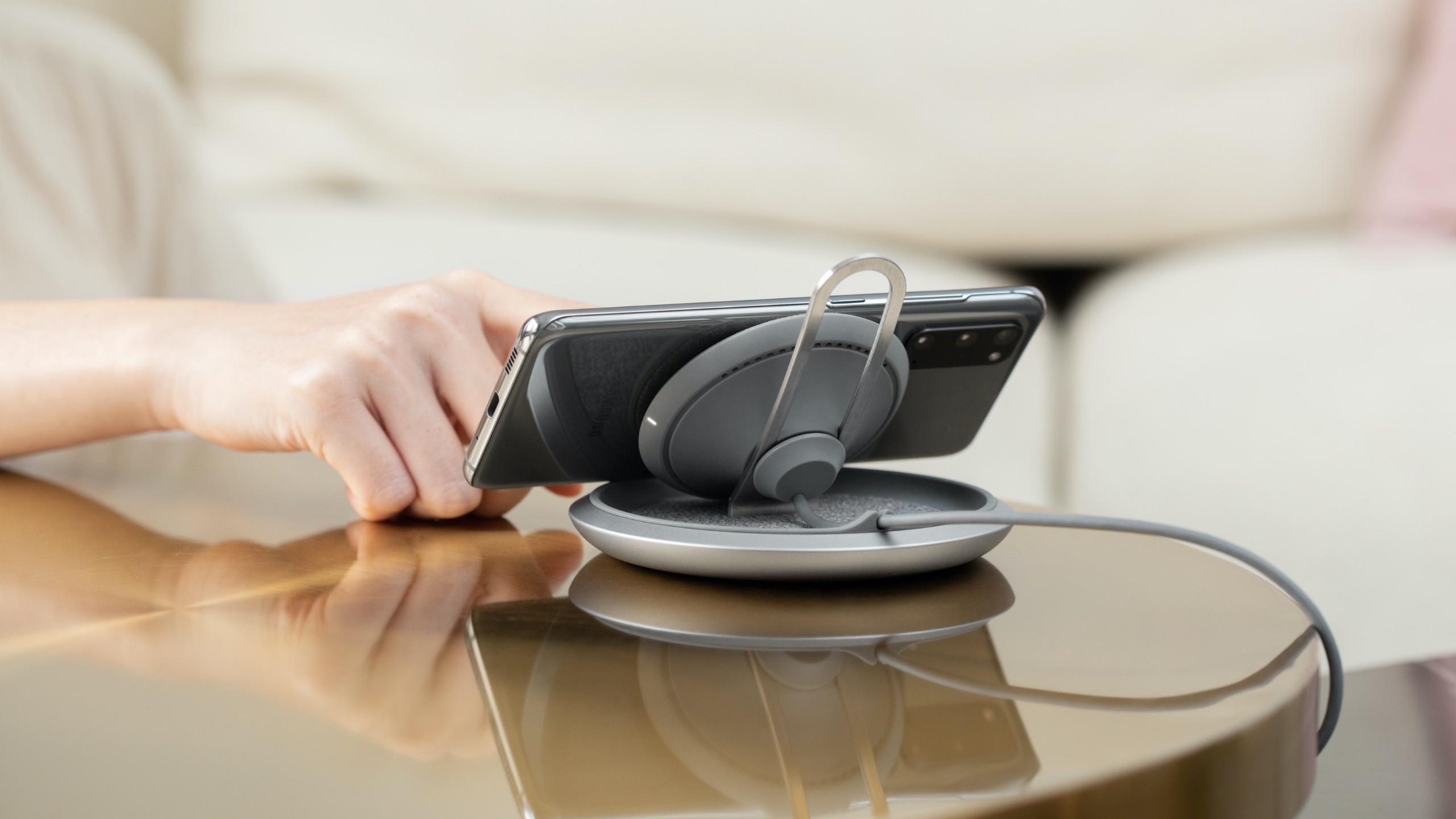 Inspired by Danish furniture design, Lounge Q keeps your phone in view while charging it wirelessly. Unlike other charging stands, this wireless charger features an adjustable-height design to accommodate phones of all sizes and fast-charges your phone up to 15 W. It also allows you to charge in both portrait and landscape mode.