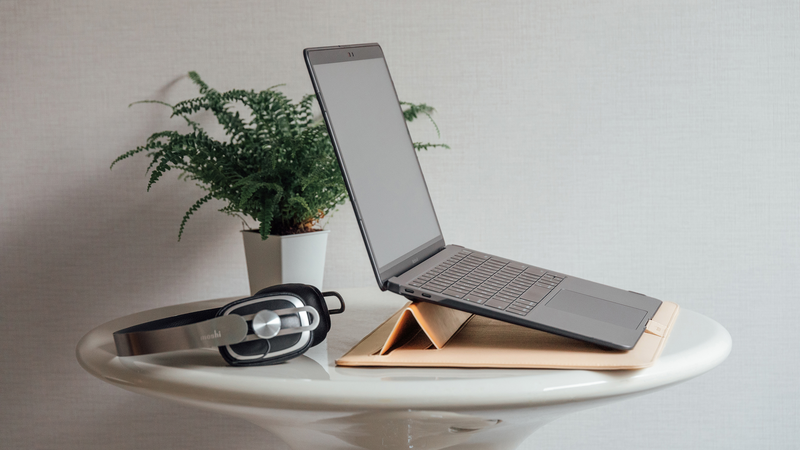 Muse folds into an elevated 15-degree stand in seconds. The ergonomic design reduces wrist strain for optimal comfort when typing, working, and browsing the web, while also maximizing airflow to keep your device cool.