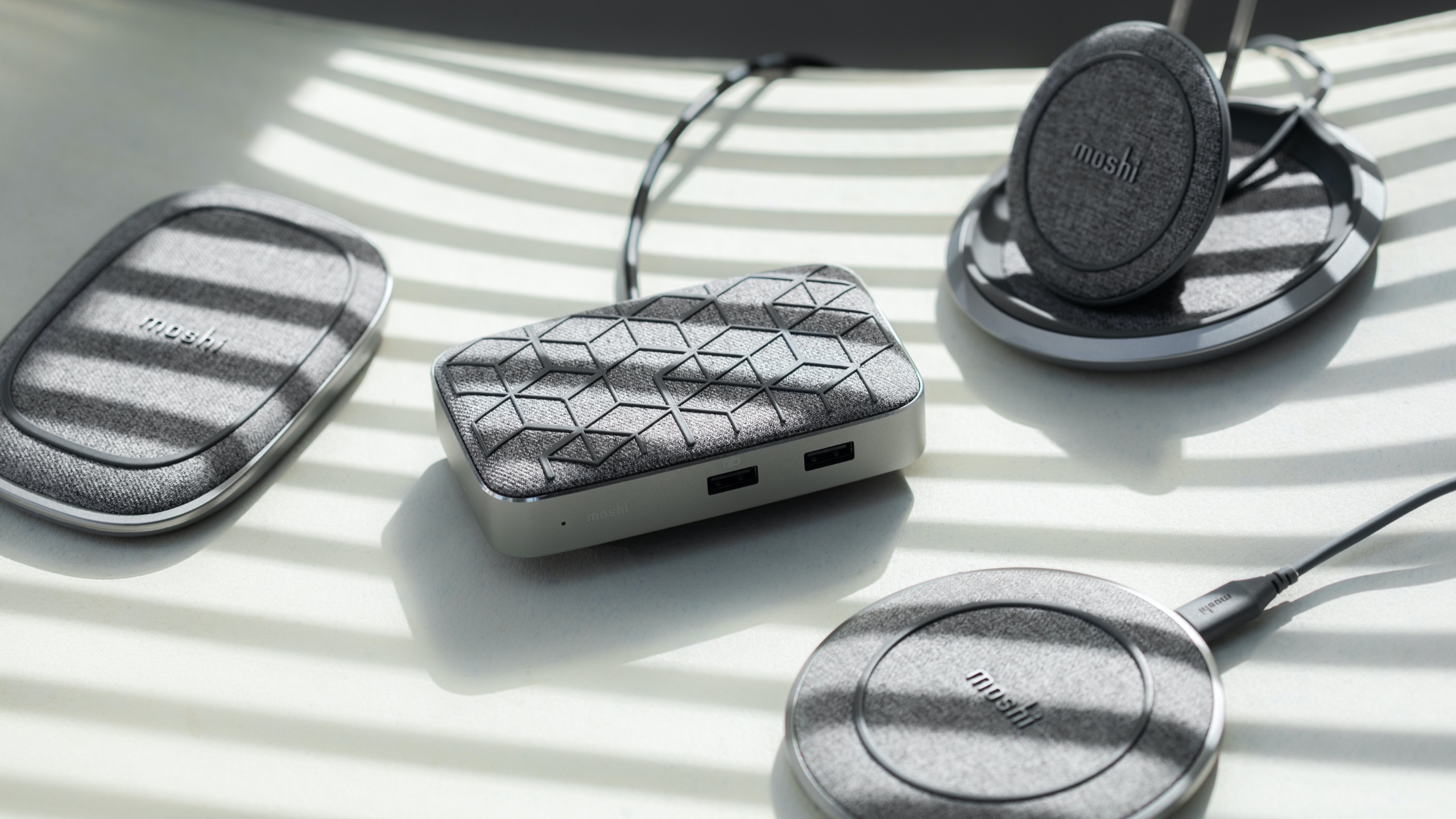 Atop Symbus Q lies a stylish 15 W Qi-certified wireless charging pad supporting Apple (7.5 W), Samsung (9 W), and Google (up to 12 W) fast-charging, with Moshi’s advanced Q-coil™ technology which can charge through cases up to 5 mm thick. A built-in smart LED shows charging status to avoid missing out on valuable charging time due to misalignment of your phone and the charging coils.